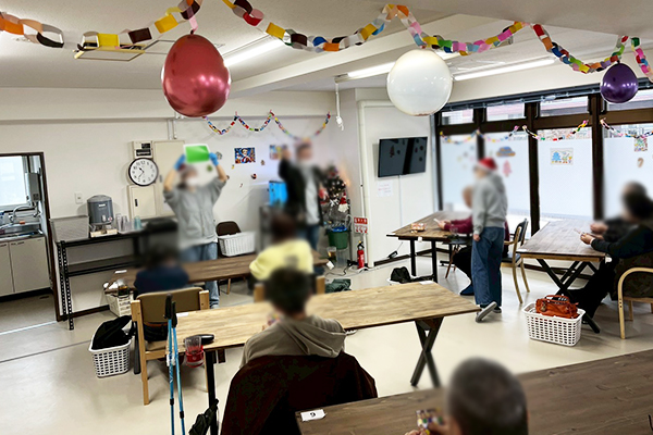 普段の作業の合間に、職員と利用者様で共に仕上げた可愛い飾り付けで事業所内を彩り、クリスマスソングの後押しもあり、みんな笑顔で楽しい会にすることができました。